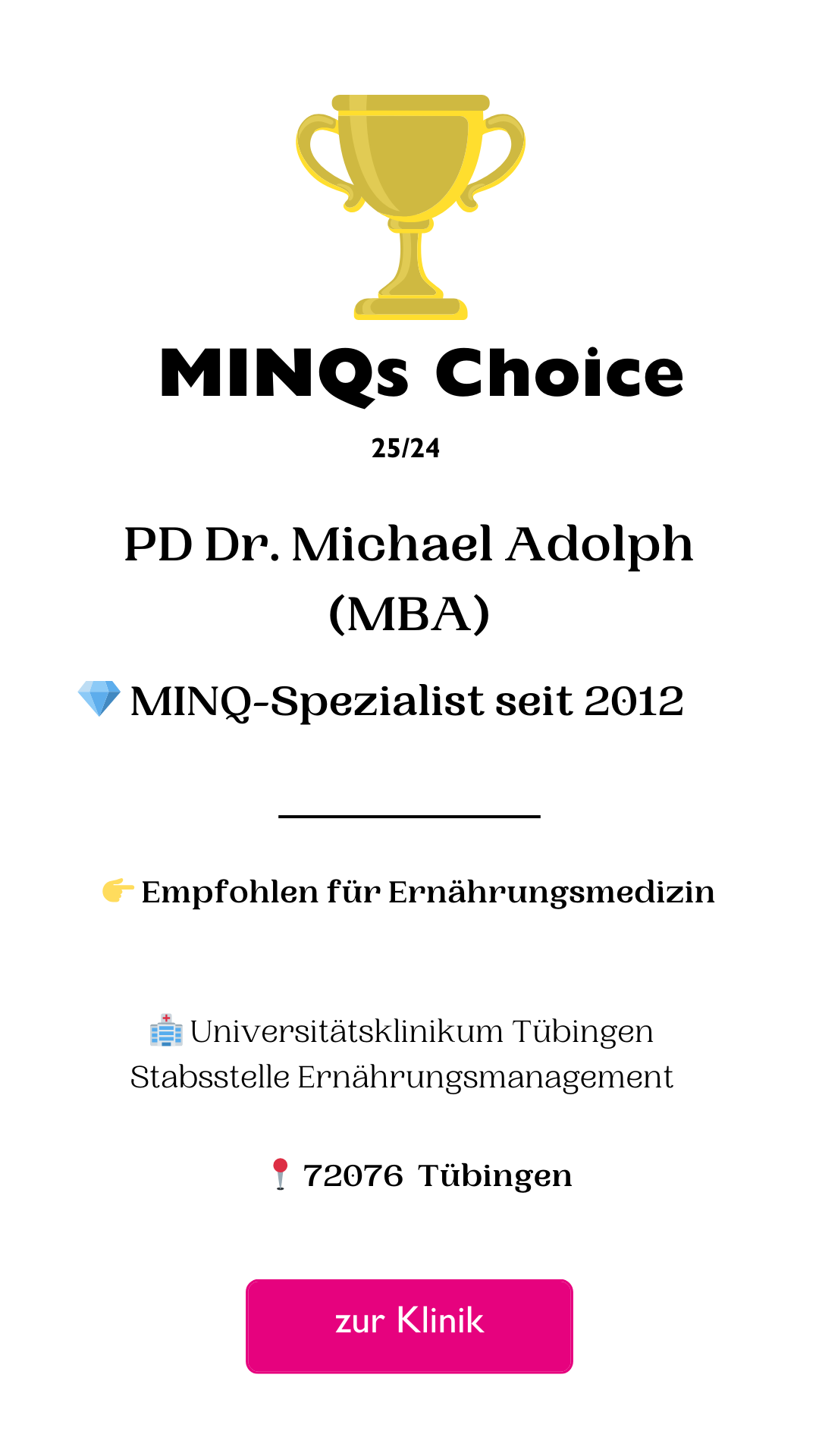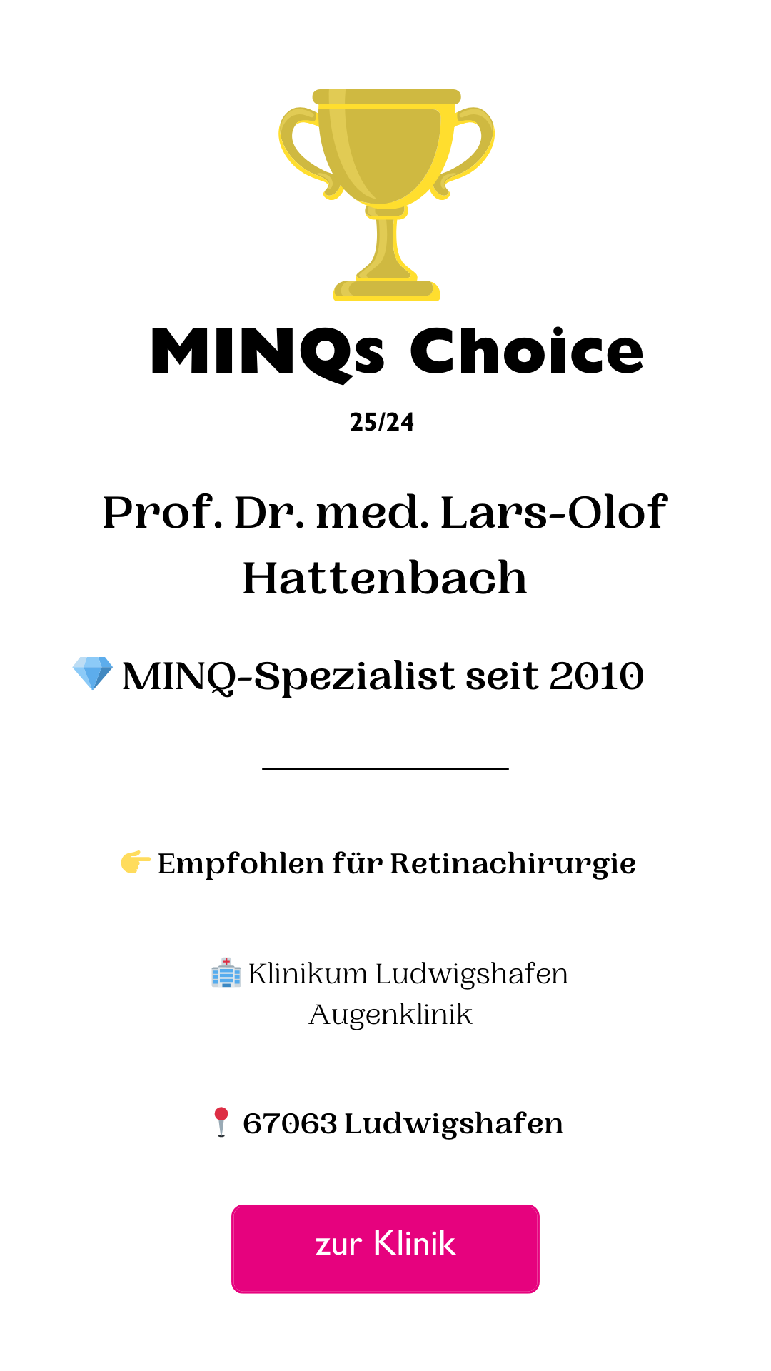 Nach mehr als 25 Jahren aktiver Recherche und Erstellung der Ärztelisten, die seit 1997 regelmäßig zuerst in der Zeitschrift FOCUS publiziert wurden und seit 2022 im Magazin stern erscheinen, haben wir uns entschlossen, unter dieser Rubrik - gewissermaßen in eigener Sache - jede Woche auf 3 besondere Mediziner:innen zu verweisen.